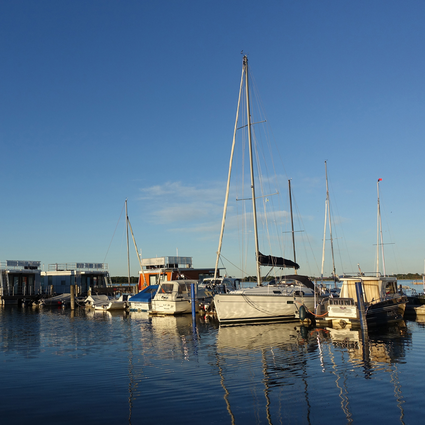 Sanftes Hafenleben am Stadthafen Ribnitz, Möwen über dem Saaler Bodden und das Rascheln des Schilfs am Bernsteinsee. Diese Kulisse nimmt Tempo raus und schärft den Blick – ideal für Notizbuchmomente im Klostergarten des Klarissenkloster.
