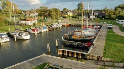 Es schließen sich Stellplätze für Wohnmobilisten und Camper mit Hafen– und Boddenblick auf die Neuendorfer Bülten an. Der Hafen ist direkt am Radweg Boddenrundweg gelegen, der hier auch Teil des Östlichen Backstein Rundweges ist.