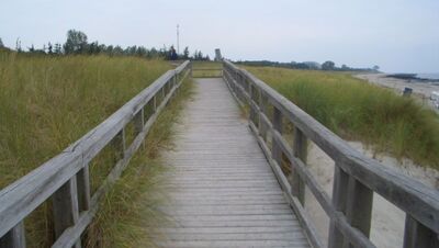 Der Strandzugang 4 ist behindertengerecht durch einen festen Steg, der bis an den Strand führt.