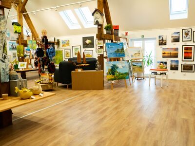 Unser Ziel ist, sowohl Hobbykünstlern als auch Profis eine Plattform zur Präsentation und zum Verkauf eigener Werke zu bieten. Zu diesem Zweck sanierten wir 2019 das ehemalige Tischlereigebäude und schufen damit über 300qm Ausstellungsfläche für all Jene, die zeigen wollen, was sie können!