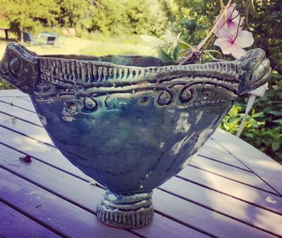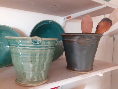 Die Arbeiten von Annette Korn fangen in besonderer Weise die Einzigartigkeit der Halbinsel Fischland/Darß ein: die unmittelbare Nähe von Bodden und Ostsee. In den Farben mattes Steingrau, glänzendes oder mattes Wassergrün und dem Abdruck der Muschel auf ihrer Keramik spiegelt sich der Charakter dieser zauberhaften Landschaft schöpferisch wieder.