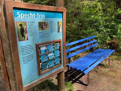 Infotafel: über Baumarten mit Baum-Memory und Holzbank
