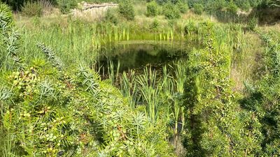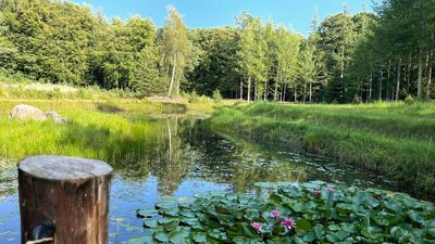 Entdecken Sie auf einer Lichtung am südlichen Zipfel der Gemeinde Saal das Kleinod: Martin Lawrenz, pensionierter Förster und Eigentümer dieses Waldstückes, hat die ehemalige Sandkuhle zu neuem Leben erweckt mit einem künstlichen Moor, Wasserflächen, Terrassen, Feldsteinhaufen und -mauer, Sitzgruppe unter Tannen am höchsten Geländepunkt … …