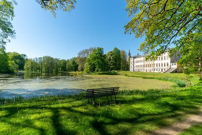 Der zu jeder Jahreszeit wunderschöne ca. 21 ha umfassende Park mit seinem großen Teich enthält viele dendrologische Besonderheiten. Er wurde 1852 von Gustav Meyer im englischen Stil angelegt - weite Wiesenräume, ausgedehntes Wegenetz mit Sichtachsen zum Schloss, System von Gräben und Teichen mit sieben Brücken. Heute ist der Park einer der wenigen erhaltenen Gärten des königlich-preußischen Hofgärtners. Den Mittelpunkt bildet ein großer Teich, der 1853 anstelle einer sumpfigen Wiese entstand.