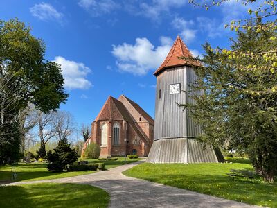 Stattlicher Backsteinbau um 1300 errichtet. Eine Besonderheit, der hölzerne Glockenturm steht neben der Kirche mit zwei Glocken von 1797 bzw. 1820.