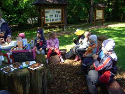 Gegenüber finden Sie unseren Naturpfad mit Rastplatz, Ökoteich und zahlreichen Schautafeln - die Natur betreffend.