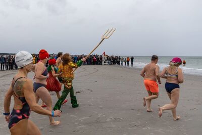 Brrrr! Da wird einem schon beim Zugucken kalt. Am 1. Tag des Jahres stürzen sich Tapfere, Verrückte und Abgehärtete in die 4 °C kalte Ostsee zum sogenannten Anbaden – eine Prerower Tradition!
