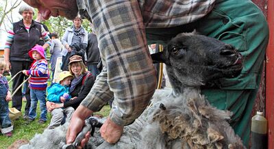 Scheren der Museumsschafe. Anmeldungen zum Scheren von Schafen im Vorfeld im Freilichtmuseum Klockenhagen möglich!